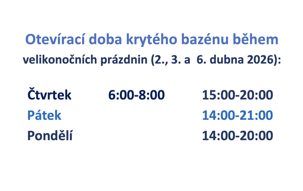 Otevírací doba bazénu během velikonočních prázdnin.